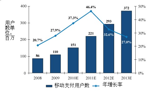 基于“中國計算機世界”的研究預(yù)測,中國移動支付用戶在2009年底達(dá)到1.1億,預(yù)計將在2013年超過3倍。由于需求大幅提高,電信運營商會繼續(xù)在每個省推出移動支付解決方案網(wǎng)絡(luò)。反過來,也會刺激第三方平臺和供應(yīng)商的發(fā)展。