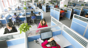 數(shù)百個(gè)人發(fā)出不同的聲音,使得整個(gè)房間都浸在一個(gè)音頻的嘈雜環(huán)境里。每一個(gè)客服代表都在說(shuō)話,各種各樣的問(wèn)題,他們都會(huì)在電腦上找到專業(yè)的解答。電話太多,客服與客服之間,幾乎沒(méi)有交頭接耳的討論和接送文件的交流。