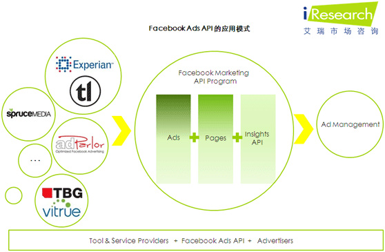 iResearch艾瑞咨詢整理Insidefacebook最新行業(yè)動態(tài)時發(fā)現(xiàn),F(xiàn)acebook于2011年8月1日正式宣布開放廣告接口(Ads API)應(yīng)用服務(wù),通過在該接口上投放第三方的高效廣告管理工具,廣告主甚至可以保證數(shù)百萬的復(fù)雜媒體營銷計劃正常運營并實現(xiàn)廣告管理的高效優(yōu)化。到目前為止,F(xiàn)acebook只為少數(shù)有限的第三方廣告管理工具供應(yīng)商提供了準入接口,包括Techlightenment(近日被Experian收購)、TBG Digital(與Vitrue達成協(xié)作)、Spruce Media、AdParlor等。此外,F(xiàn)acebook也建立了廣告接口營銷項目計劃,通過收取廣告、頁面、廣告接口洞察等相關(guān)費用來實現(xiàn)盈利。隨著更多的第三方工具與服務(wù)供應(yīng)商進入Ads API市場,越來越多的當(dāng)?shù)匦⌒蛷V告主也有望享受低成本的廣告優(yōu)化管理服務(wù)。
