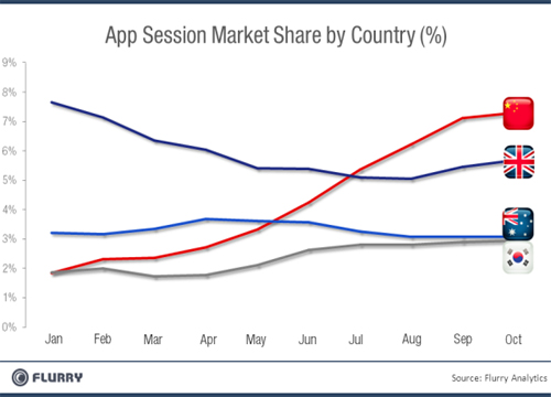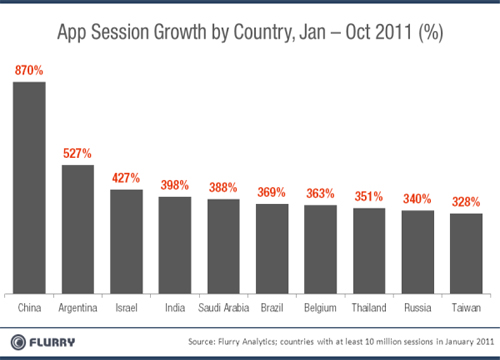 北京時間11月3日消息,據(jù)國外媒體報道,日前,移動應用分析網(wǎng)站Flurry發(fā)表分析文章稱,iOS和Android移動應用的下載量不斷增加,而中國的移動應用下載量和新應用需求更是迅猛增長,中國已經(jīng)一躍成為全球第二大移動應用市場,全球應用開發(fā)者都不可忽視中國市場。