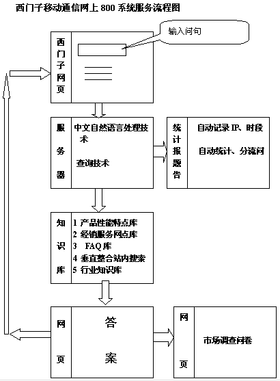 西門子的中文網(wǎng)站開通后,很快就有大量的咨詢郵件通過電子郵件的形式發(fā)過來,開始時基本采用人工回復的形式,但隨著業(yè)務的發(fā)展和網(wǎng)絡的普及,隨之而來的就是顧客的咨詢量的極大豐富,這就帶來客戶服務的成本大大增加和而服務也很難標準化、遺漏和延遲回復的事時有發(fā)生。雖然在不斷的豐富FAQ(常見問題解答),但當FAQ多了,又直接給顧客的查找?guī)砝щy,客戶服務人員又加上了對知識庫的全文檢索功能,但很快就發(fā)現(xiàn)全文檢索無論是在查詢精度還是查詢面上都有一定的局限,而且顧客在鍵入關鍵字時經(jīng)常采用自然語言,很多時候全文檢索無法支持。同時,公司的營銷和客戶人員也特別希望能收集到客戶的訪問記錄,在這些需求的推動下,西門子構建了現(xiàn)在的網(wǎng)上800服務系統(tǒng),作為其CRM體系中重要的環(huán)節(jié)。