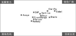 就CRM的廠商來(lái)講,市場(chǎng)份額比較分散,而且競(jìng)爭(zhēng)態(tài)勢(shì)變化很快。實(shí)際上,除了前五名的廠商外,其它廠商的市場(chǎng)份額不超過(guò)2%,其中大多數(shù)CRM廠商是在過(guò)去18個(gè)月才推出CRM產(chǎn)品。