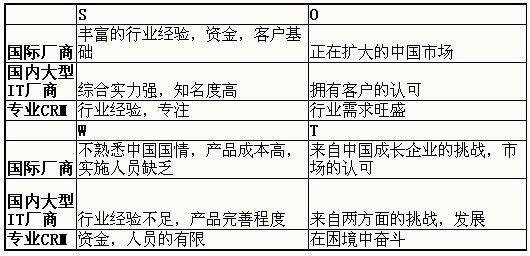 國內的大型軟件公司,ERP+CRM的優(yōu)勢。為了擴展其產品線的需要,也在近幾年進入了CRM領域。用友公司的金種子計劃,金碟公司的東方明珠計劃逐漸加強投入,神州數碼與臺灣軟件公司的合作恐怕也不會不對這樣一塊蛋糕有所想得。