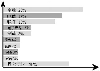 CRM的應(yīng)用已經(jīng)覆蓋了幾乎所有的行業(yè),典型行業(yè)客戶應(yīng)用案例和效果為其他企業(yè)采取行動(dòng)提供了樣板。這些行業(yè)包括銀行、保險(xiǎn)、證券、基金、電信、郵政、制造、醫(yī)藥、零售、地產(chǎn)、IT、傳媒、交通和物流等。在整個(gè)市場(chǎng)中,主要行業(yè)的占有率情況參見下圖: