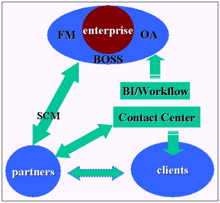 根據(jù)上面的分析SCN新一代客戶聯(lián)絡(luò)中心建成后將具備較強(qiáng)的雙向交互能力,為了更好的統(tǒng)一和完善整個(gè)客戶關(guān)系管理框架,我們希望盡可能的將企業(yè)內(nèi)外的所有溝通都綜合到一個(gè)平臺(tái),他融合了企業(yè)的主頁,企業(yè)的客戶聯(lián)絡(luò)中心,企業(yè)的內(nèi)部辦公自動(dòng)化網(wǎng),企業(yè)資源管理系統(tǒng)等這樣客戶只需要通過這樣的一個(gè)平臺(tái)便可解決所有問題,或者說是客戶、員工等企業(yè)相關(guān)的任何個(gè)體之間的交流可以有多個(gè)表現(xiàn)形式如電話,電郵,網(wǎng)絡(luò),辦公自動(dòng)化系統(tǒng),短信等等但最終都轉(zhuǎn)移到同一個(gè)平臺(tái)上來實(shí)現(xiàn)交換。為什么需要這樣呢?只有這樣才能最好的實(shí)現(xiàn)統(tǒng)一信息。信息統(tǒng)一了,我們就可以建立客戶資訊的數(shù)據(jù)倉庫了,有了統(tǒng)一的數(shù)據(jù)信息,任何基于客戶的分析、細(xì)分都可以實(shí)現(xiàn),而客戶的任何遺留痕跡如嗜好,習(xí)慣,忠誠(chéng)度,消費(fèi)意愿等等都可以方便的提取,最后通過商業(yè)智能輔助進(jìn)行客戶生命周期管理、市場(chǎng)營(yíng)銷、財(cái)務(wù)管理和戰(zhàn)略決策等。形成一個(gè)良性循環(huán)的客戶關(guān)系管理生態(tài)鏈。由于客戶關(guān)系管理將涉及到各部門之間的協(xié)調(diào)和合作,業(yè)務(wù)模式變革等眾多方面,在此不作詳細(xì)的描敘,本人將在另外的文章中專門來探討客戶關(guān)系管理中長(zhǎng)遠(yuǎn)規(guī)劃的問題。