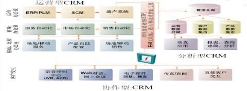 從上圖中不難看出,CRM的三種類(lèi)型:運(yùn)營(yíng)型、協(xié)作型、分析型。前兩種形式只是一些簡(jiǎn)單的記錄,把銀行業(yè)所需要的客戶(hù)基本檔案的收集,非常簡(jiǎn)單。真正能對(duì)銀行經(jīng)營(yíng)產(chǎn)生效益在于分析型CRM,其重點(diǎn)在于對(duì)相關(guān)數(shù)據(jù)的分析與挖掘----BI,強(qiáng)調(diào)提供詳細(xì)分析。