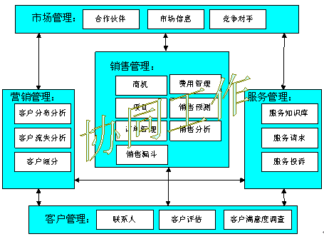 以客戶管理、銷售、服務(wù)、營銷、市場之間的協(xié)同工作(CooperativeWorking)為基礎(chǔ)目標(biāo);