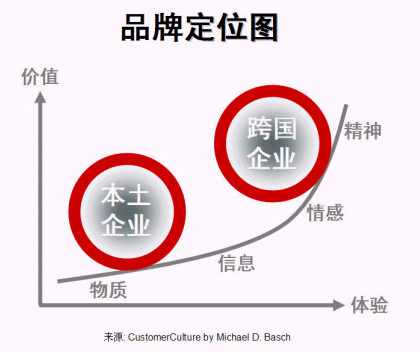 客戶體驗(yàn)是客戶關(guān)系管理的重要組成部分。根據(jù)過去數(shù)年評選中國最佳CRM實(shí)施企業(yè)所作的分析,本土與外資企業(yè)在企業(yè)體檢中各項(xiàng)主要評分中有較大差距,其中之一是客戶體驗(yàn)(-7.1分,見圖一、本土與跨國企業(yè)之差距)。本土企業(yè)若只提供低層次的客戶體驗(yàn),只為客戶帶來低價(jià)值,也只能打價(jià)格戰(zhàn)、做代工,很難做大做強(qiáng)打通全球市場。做好品牌,其實(shí)再深入一點(diǎn)說就是要做好客戶體驗(yàn),價(jià)值(價(jià)格)才會上去(見圖二、品牌定位)。