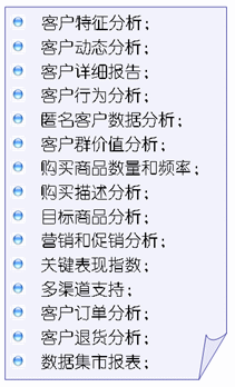 IQ等主流數(shù)據(jù)倉(cāng)庫(kù)系統(tǒng)的無(wú)縫銜接,實(shí)現(xiàn)了CRM最核心的價(jià)值——多維度的客戶(hù)分析,從而在技術(shù)上和應(yīng)用上遠(yuǎn)遠(yuǎn)超越了傳統(tǒng)的CRM。