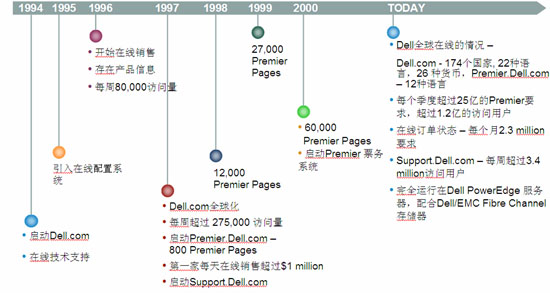 Dell從2004年開始,在中國大陸推出改服務,開始的服務對象都是一些跨國公司在國內的分支機構,到現(xiàn)在為止,已經(jīng)有1000個用戶,通過Premier下單的金額,也從開始的每月不足10萬美元,到現(xiàn)在的每月超過400萬美元。