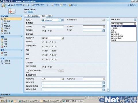 Dynamics CRM 4.0的聯(lián)絡(luò)人,除基本信息之外,還可以針對偏好的聯(lián)絡(luò)方式、活動記錄、次要聯(lián)絡(luò)人或者商機(jī)管理等,儲存更詳細(xì)的記錄。