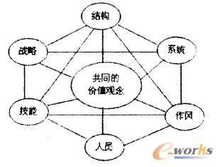 按照麥肯錫以及科特勒的綜合觀點,前面三個要素——戰(zhàn)略、結(jié)構(gòu)和系統(tǒng)被認為是最成功的硬S;后面四個要素——作風、人員、技能和共同的價值觀念是軟S。每個組織都和總體環(huán)境的某個部分相互影響,相互作用,并且把這一部分成為相關(guān)環(huán)境并指出最能適應(yīng)環(huán)境的公司必將獲得成功。