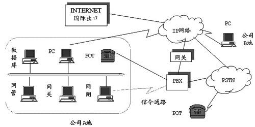 一般大企業(yè)具有自己的VPN網(wǎng)絡(luò),而且每一個分公司均有發(fā)達(dá)的計(jì)算機(jī)局域網(wǎng)和PBX資源,此時應(yīng)充分利用這兩種資源。通過這種網(wǎng)絡(luò)結(jié)構(gòu),企業(yè)建立了內(nèi)部虛擬計(jì)算機(jī)、電話、傳真網(wǎng)絡(luò),大大節(jié)省了公司內(nèi)部電話傳真的費(fèi)用,實(shí)際上是把長途費(fèi)用變成了虛似本地網(wǎng)業(yè)務(wù)費(fèi)用(但長途線路仍需租用),有時,企業(yè)的PBX可以直接連到Internet上,這樣可繞過收費(fèi)偏貴的本地網(wǎng)PSTN部分,這樣的網(wǎng)絡(luò)設(shè)計(jì)對大企業(yè)來說有較大的自主性。