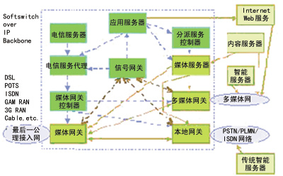 E1、DSL、Ethernet到無線接入技術(shù)GSM/GPRS、PHS、W-CDMA以至未來的接入技術(shù);支持與各種傳統(tǒng)電信業(yè)務網(wǎng)絡如PSTN和PLMN網(wǎng)絡以信令網(wǎng)節(jié)點方式互聯(lián),支持與IP業(yè)務網(wǎng)絡(如VoIP)和多媒體通信網(wǎng)絡(如Internet)互聯(lián);與接入網(wǎng)絡的信令和傳統(tǒng)業(yè)務網(wǎng)絡的信令(SS7)無縫互聯(lián);支持話音、遠程會議、多媒體通信等基于會話的通信業(yè)務;