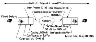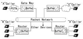 網關或路由器內部的語音編碼器對帶內音頻信號進行打包和重組。這些器件對確認接收和有效數(shù)據包接收的順序進行糾錯檢查。一旦發(fā)現(xiàn)錯誤,將命令重發(fā),而重發(fā)相關數(shù)據包則不可避免地造成傳輸上的延時。網關或路由器上的緩存器