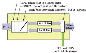 網關(Gate Way) 網關是在PSTN和分組交換網之間傳輸呼叫的器件,包括語音編碼器、回音抑制器、靜音抑制、收/發(fā)緩存器和分組交換網的排序管理等部分,如圖2所示。
