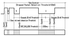 圖5所示的是丟包測試的時序圖, 圖中的語音路由測試信號即為“Golden Voice”產生的復合語音信號。在測試中,用戶可以自行設定分別為5ms、10ms、15ms、25ms、50ms或100ms檢測門限值。