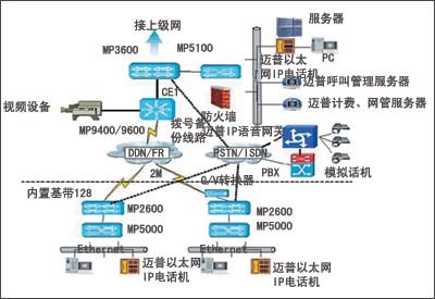 該方案中,整個網(wǎng)絡(luò)構(gòu)建基本上在原有網(wǎng)絡(luò)基礎(chǔ)之上進行搭建,沒有影響到原有網(wǎng)絡(luò)的重建,同時還充分利用了原有的路由IP功能,優(yōu)化了網(wǎng)絡(luò)結(jié)構(gòu)。邁普IP語音設(shè)備完全遵循H.323標(biāo)準(zhǔn)設(shè)計,可以完全同其它標(biāo)準(zhǔn)設(shè)備廠商兼容,如Cisco以太網(wǎng)電話機、路由器IP語音模塊等。為了充分保證用戶投資,設(shè)計時充分考慮前向兼容已有產(chǎn)品(如路由器IP語音模塊),后向兼容未來產(chǎn)品(如邁普高密度語音網(wǎng)關(guān)、邁普以太網(wǎng)電話機等)。該方案有高效的成本控制能力,MyPower