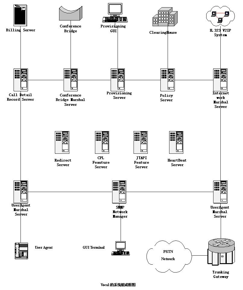 在各種的VOIP開(kāi)放原碼的開(kāi)發(fā)項(xiàng)目中,Vovida的基于SIP協(xié)議的VoCAL(Vovida Open CommunucAtion Library)不僅僅是在基于SIP的開(kāi)放原代碼協(xié)議棧中是最為龐大而且完善的,甚至在所有的原碼開(kāi)放的多媒體通訊協(xié)議棧中同樣也是完善而且全面的,目前發(fā)布的VOCAL1.4.0主要支持RFC2543,據(jù)稱(chēng)在新版本的Vocal1.5.0將支持RFC3261協(xié)議;Vocal提供了基本的SIP呼叫控制和切換,例如:用戶注冊(cè)和登記,呼叫初始化,修改呼叫特性,或者重新定義呼叫特性,終止呼叫;以及一些用戶的基本呼叫特性:例如呼叫前轉(zhuǎn),呼叫等待,呼叫阻塞,呼叫轉(zhuǎn)移,語(yǔ)音郵件等等。