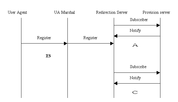 1> 在A階段當(dāng)啟動(dòng)Redirection Server(RS)的時(shí)候,RS向Provisioning Server(PS)發(fā)送SubScribe消息,取得合法的用戶(hù)列表;