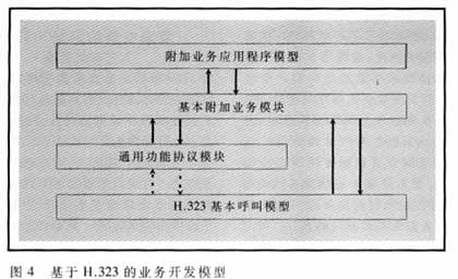 。龋矗担暗囊粋強(qiáng)項(xiàng)是它可以使用多級方式開發(fā)附加業(yè)務(wù);緲I(yè)務(wù)由構(gòu)件或原語組成,由基本業(yè)務(wù)可開發(fā)更復(fù)雜的業(yè)務(wù)。復(fù)合業(yè)務(wù)由兩個或更多個基本業(yè)務(wù)組成。應(yīng)用程序通過API接口使用基本業(yè)務(wù)和復(fù)合業(yè)務(wù)為用戶提供多媒體業(yè)務(wù)。H.450附加業(yè)務(wù)體系為該類業(yè)務(wù)提供了信令方式和標(biāo)準(zhǔn)構(gòu)件模塊。使用相似的方法,H.323將不但能提供基本的電話業(yè)務(wù)和附加業(yè)務(wù),而且能夠提供基于IP的增值業(yè)務(wù),如統(tǒng)一消息、呼叫分配、VPN和統(tǒng)一號碼業(yè)務(wù)。該業(yè)務(wù)開發(fā)模型體現(xiàn)了軟件重用的思想。