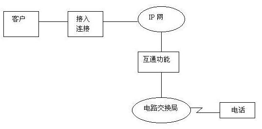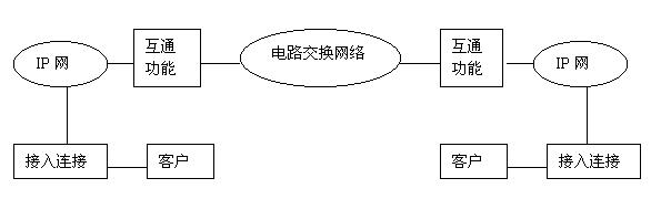 第三階段的重點(diǎn)是電路交換網(wǎng)通過IP網(wǎng)至電路交換網(wǎng),即實(shí)現(xiàn)以Internet作為傳送手段進(jìn)行通信的目的,其示意圖如圖所示。