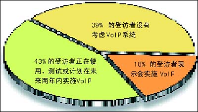 該調查收集了全球254名高級管理人員對未來企業(yè)網(wǎng)絡的意見和看法。其中,43%的受訪者表示,他們正在使用、測試或計劃在未來兩年內實施VoIP;另外 18% 的受訪者表示,從長遠的角度來講,他們會實施 VoIP。市場預測也顯示相同的樂觀前景。研究機構Gartner Dataquest預期到2008年,公用電話交換網(wǎng) (PSTN) 的零售語音收入將輕微下跌,而VoIP的零售收入則上升 38.6%。