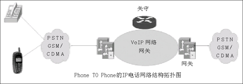 雖然從方式上看,IP話音業(yè)務(wù)包括了Phone TO Phone、PC TO Phone及PC TO PC三種方式,但是國內(nèi)主流的IP電話網(wǎng)絡(luò)仍然是以Phone TO Phone方式進行,其網(wǎng)絡(luò)拓撲結(jié)構(gòu)如圖所示。