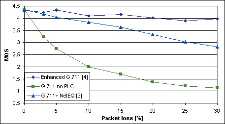 為了處理數(shù)據(jù)包丟失問題,VoIP和VoFi系統(tǒng)采用了名為數(shù)據(jù)包丟失隱藏(packet loss concealment)的一種技術(shù)。這種技術(shù)并不找回丟失的數(shù)據(jù)包,只是把丟失數(shù)據(jù)包對語音產(chǎn)生的不利影響掩蓋起來。讓人驚訝的是,這種方法的效果非常好:在某些情況下最多允許可以丟失30%的數(shù)據(jù)包