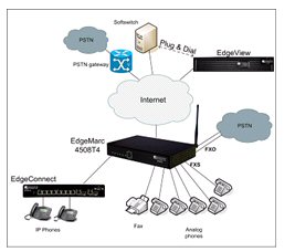 也可以直接將IP電話插到VLAN交換機(jī)接口打IP電話, 同時(shí)PC等設(shè)備可以直接插到VLAN交換機(jī)接口上互聯(lián)網(wǎng). 可以說EdgeMarc4500滿足了企業(yè)用戶的所有通信需求.