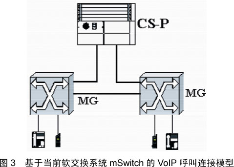 針對第一類的連接通話情況,可以用建立如下的通話連接模型,如圖3所示。該圖是整個(gè)軟交換系統(tǒng)的簡化圖,具體的細(xì)節(jié)沒有描述。