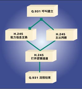 Q.931呼叫建立流程啟動呼叫建立過程并且通知遠(yuǎn)程終端有一個(gè)呼入。當(dāng)呼叫建立起來后,某個(gè)終端可能啟動H.245規(guī)定的主從判斷流程或能力信息互換流程。每個(gè)終端都需要執(zhí)行能力信息互換流程,但是只要一個(gè)終端執(zhí)行主從判斷流程就可以了。主從判斷和能力信息互換完成后,邏輯信道打通了。最后,該對話通過另一個(gè)Q.931流程關(guān)閉。