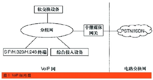 圖1所描述的是一個(gè)VoIP通用的組網(wǎng)圖,按照VoIP產(chǎn)品在網(wǎng)絡(luò)中的位置和作用不同,通常將VoIP產(chǎn)品分為三類(lèi):