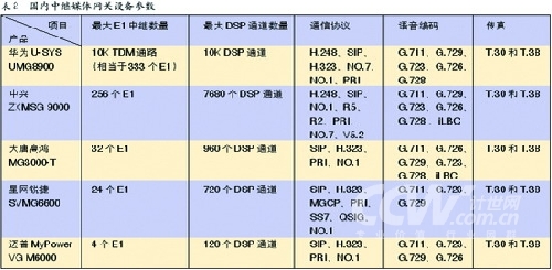 結(jié)合表2中的數(shù)據(jù),可以看出國(guó)內(nèi)中繼媒體網(wǎng)關(guān)設(shè)備制造商的定位非常類(lèi)似于軟交換設(shè)備的市場(chǎng)定位,從設(shè)備支持的最大E1數(shù)和最大DSP通道數(shù)來(lái)看,華為和中興的中繼媒體網(wǎng)關(guān)主要是面向運(yùn)營(yíng)商客戶(hù),不難發(fā)現(xiàn)網(wǎng)關(guān)支持的協(xié)議也最為豐富,能夠滿(mǎn)足和運(yùn)營(yíng)商不同協(xié)議體系網(wǎng)絡(luò)互通的需要。而大唐高鴻、星網(wǎng)銳捷和邁普的中繼媒體網(wǎng)關(guān)主要定位在企業(yè)行業(yè)客戶(hù)。