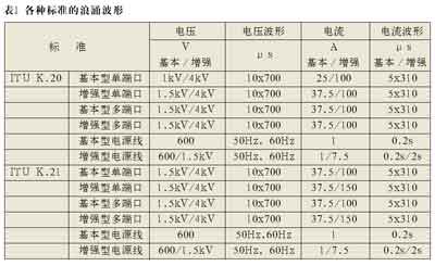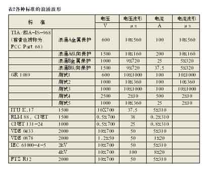 K.20/K.21(國(guó)際電信聯(lián)盟)和中國(guó)的YD/T993、950標(biāo)準(zhǔn)。不同的標(biāo)準(zhǔn)要求保護(hù)器件、技術(shù)和拓?fù)渚哂胁煌姆(wěn)定性狀態(tài)。通過比較我們發(fā)現(xiàn),符合美國(guó)標(biāo)準(zhǔn)的保護(hù)器的抵御能力要比符合國(guó)際電信聯(lián)盟標(biāo)準(zhǔn)的高,更比符合中國(guó)標(biāo)準(zhǔn)的為高。在大部分情況下,符合美國(guó)標(biāo)準(zhǔn)的保護(hù)解決方案基本上都能通過ITU-T