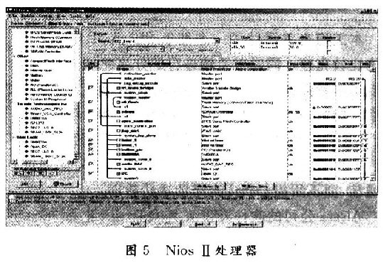 首先使用SOPC Builder系統(tǒng)工具構(gòu)建了一個NiosCPU作為整個系統(tǒng)的處理器核,它的Avalon總線對其他接口及控制器進(jìn)行指令和數(shù)據(jù)傳輸,包括:由內(nèi)部定時器控制的Avalon總線;為Nios