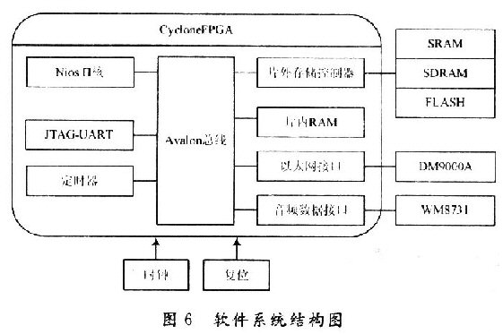 SOPC系統(tǒng)的平臺包括:Altera的Nios處理器、Aval—on總線,片內(nèi)外存儲器以及外設(shè)模塊等。利用SOPCBuilder,用戶可以很方便地將處理器、存儲器和其他外設(shè)模塊連接起來,形成一個完整的系統(tǒng)。其中,SOPC