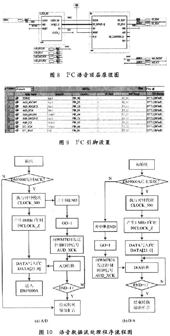由于語音編解碼器的處理延時是影響VoIP話音質(zhì)量的因素之一,為了保證語音編解碼的實時性,軟件系統(tǒng)在控制WM8731編解碼器的編解碼同時,加入了I2C語音模塊,以實現(xiàn)語音數(shù)據(jù)的實時處理。它采用自頂向下設(shè)計方法利用QuartusⅡ進(jìn)行設(shè)計。