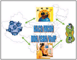 在各分呼叫中心之間,通過(guò)DDN數(shù)據(jù)專(zhuān)線(xiàn)或其他形式的傳輸網(wǎng)絡(luò)實(shí)現(xiàn)用戶(hù)信息及其交易數(shù)據(jù)在呼叫中心之間的傳輸,IP語(yǔ)音數(shù)據(jù)也通過(guò)租用的DDN專(zhuān)線(xiàn)傳送。各呼叫中心通過(guò)SS7或ISDN的信令鏈路判斷轉(zhuǎn)接話(huà)務(wù)員分機(jī)的閑忙,將電話(huà)在呼叫中心節(jié)點(diǎn)之間進(jìn)行轉(zhuǎn)接。