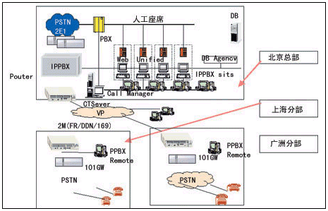 分布式呼叫中心一般由總中心和分中心組成,它們之間可以是對(duì)等關(guān)系或隸屬關(guān)系,各中心分布于不同的地理位置,在運(yùn)作時(shí)間、資源、功能上互相協(xié)作,為用戶(hù)提供最大限度的服務(wù)。分布式呼叫中心在功能上的突出需求為:用戶(hù)打入的電話(huà)可以在各分呼叫中心之間轉(zhuǎn)接,即實(shí)現(xiàn)網(wǎng)絡(luò)ACD;不論用戶(hù)資料存放于何地理位置的數(shù)據(jù)庫(kù),它都應(yīng)能在電話(huà)被派到話(huà)務(wù)員座席時(shí),在來(lái)電信息中彈出,即實(shí)現(xiàn)遠(yuǎn)程數(shù)據(jù)訪(fǎng)問(wèn);具有響應(yīng)IP電話(huà)的能力,以處理通過(guò)IP網(wǎng)絡(luò)傳送過(guò)來(lái)的異地用戶(hù)呼叫或Web呼叫;呼叫排隊(duì)模塊應(yīng)具有較強(qiáng)的路由能力,以使異地用戶(hù)能直接被最適合的話(huà)務(wù)員接聽(tīng)。