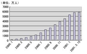 從使用即時通訊的用戶數(shù)目來看,其增長速度十分驚人,到2001年3月份,其總量達到了6000萬人。這主要得益于中國這兩年互聯(lián)網(wǎng)發(fā)展速度迅猛,而且這還與人們對于即時通訊的需求在增加有關(guān),很多人在網(wǎng)上有兩個甚至三個或更多的OICQ號碼以便與不同的伙伴聯(lián)系。