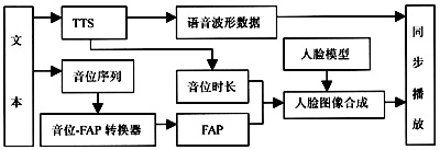 系統(tǒng)由語音合成部分提供時間同步信息,實現(xiàn)完全同步的語音和圖像播放。系統(tǒng)中語音的發(fā)音速度可調(diào),圖像以固定的幀速率播放,不受語音快慢的影響。當語音速度加快時,每個音節(jié)的圖像幀數(shù)將減少;反之,當語音速度放慢時每個音節(jié)的圖像幀數(shù)將增加。圖像的幀速率可根據(jù)系統(tǒng)性能來調(diào)節(jié),使系統(tǒng)在各種性能的機器上均能保持語音與圖像的同步。