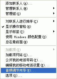 同樣,首先你應(yīng)該在MSN Messenger中調(diào)節(jié)你的音頻和視頻設(shè)備。選擇工具->音頻調(diào)節(jié)向?qū)?圖8)就會彈出“音頻和視頻調(diào)諧向?qū)А钡拇翱?圖9),請根據(jù)這個向?qū)У奶崾荆徊揭徊竭M(jìn)行測試和調(diào)節(jié)。