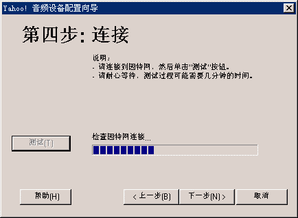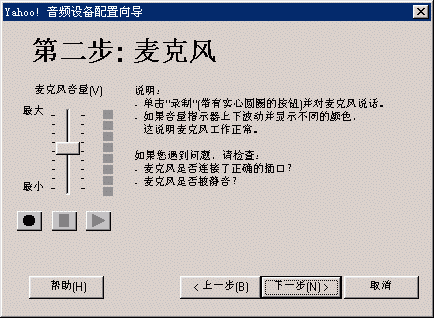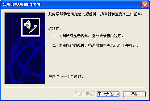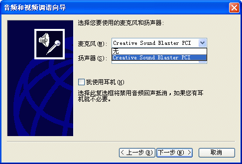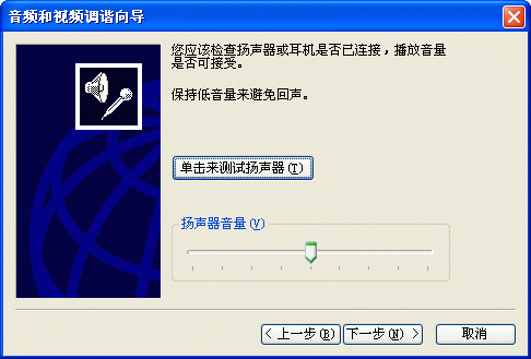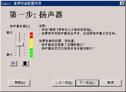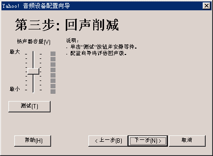 選擇幫助->音頻設(shè)備配置向?qū)?圖2),會彈出“音頻設(shè)備配置向?qū)А贝翱?圖3),這個向?qū)䦷椭銓P(yáng)聲器、麥克風(fēng)、回音、網(wǎng)絡(luò)連接等項(xiàng)目進(jìn)行標(biāo)準(zhǔn)的測試和設(shè)置。