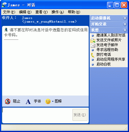 在對你的音、視頻設(shè)備檢查無誤、調(diào)試完畢后,恭喜你!你可以馬上給你的朋友打可視電話了。點(diǎn)擊在線好友的Yahoo! ID,就會彈出一個訊息發(fā)送框(圖6),在菜單欄下面的幾個按鈕中有“視頻”和“語音”兩個按鈕。沒錯!就是它們了,點(diǎn)吧!點(diǎn)擊“視頻”按鈕后彈出了剛才的“我的即時影像”窗口;點(diǎn)擊“語音”按鈕后,訊息發(fā)送框中間部分會多出一條語音顯示和控制的狀態(tài)欄。(見圖7)對方只需右鍵單擊朋友列表中你的Yahoo! ID,并選擇“觀看即時影像”即可看到你的影像并同時聽到你的聲音。OK,開始你們愉快的交流吧!:)