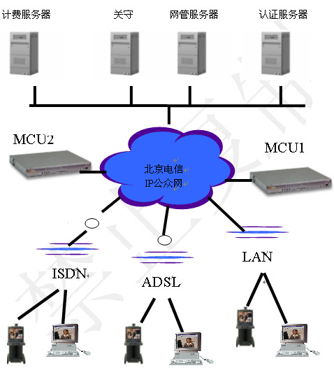 H.323協(xié)議的視訊平臺包括兩個層面:視訊交換網(wǎng)絡(luò)和運營支撐網(wǎng)絡(luò)。視訊交換網(wǎng)絡(luò)包括MCU、Gatekeeper、Gateway、終端等。運營支撐網(wǎng)絡(luò)包括網(wǎng)絡(luò)管理系統(tǒng)、認證計費系統(tǒng)、資源管理系統(tǒng)、會議控制系統(tǒng)、用戶管理系統(tǒng)、客戶服務(wù)系統(tǒng)等。
