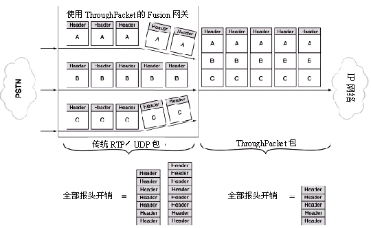 Clarent ThroughPacket本質(zhì)上是一種中繼技術,它把來自多個通道的數(shù)據(jù)連接成一個單獨的包。這明顯地減少了網(wǎng)關每時每刻都要傳送的包數(shù)量。由于發(fā)送更少的包穿過網(wǎng)絡,Clarent