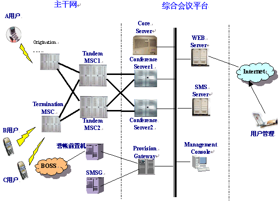 概述 。。今年來,隨著電話會議技術(shù)的不斷成熟,基于計(jì)算機(jī)平臺的會議型業(yè)務(wù)應(yīng)用越來越活躍,其中電話會議系統(tǒng)、QQ聊天系統(tǒng)以及BGM便是主要熱門應(yīng)用。 。。交互式電話會議系統(tǒng)是一個(gè)真正由用戶自己管理的智能型交互式電話會議系統(tǒng),是目前國際上流行的一種召開會議的新形式。客戶利用它可以隨時(shí)隨地召開本市、國內(nèi)或國際的電話會議,人們無論身在何處,只需撥打一個(gè)事先約定的電話會議號碼和密碼,即可參加會議,并且能自由組會,同時(shí)發(fā)言,自由交談。可以同時(shí)招開數(shù)十方,適用于商務(wù)研討、緊急討論會、信息匯總會、親友聚會等各種各樣的會議。