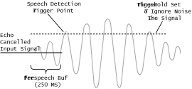 - 預(yù)緩沖(Pre-Speech Buffer) - 進入的語音數(shù)據(jù)被存在一個250毫秒的緩沖區(qū)里。 當(dāng)檢測到語音能量,這一部分儲存在緩沖區(qū)里的語音就會被轉(zhuǎn)發(fā)到語音識別資源來被處理。這種預(yù)緩沖的里包含的關(guān)鍵信息在高識別準確率要求的時候是十分關(guān)鍵的。